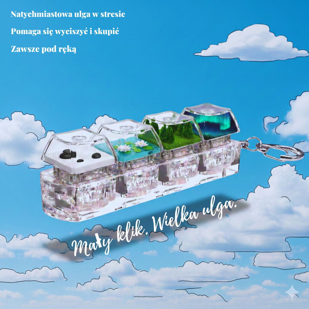 Klawuś™ daje natychmiastowy, przewidywalny bodziec — klik, który rozładowuje napięcie nerwowe.